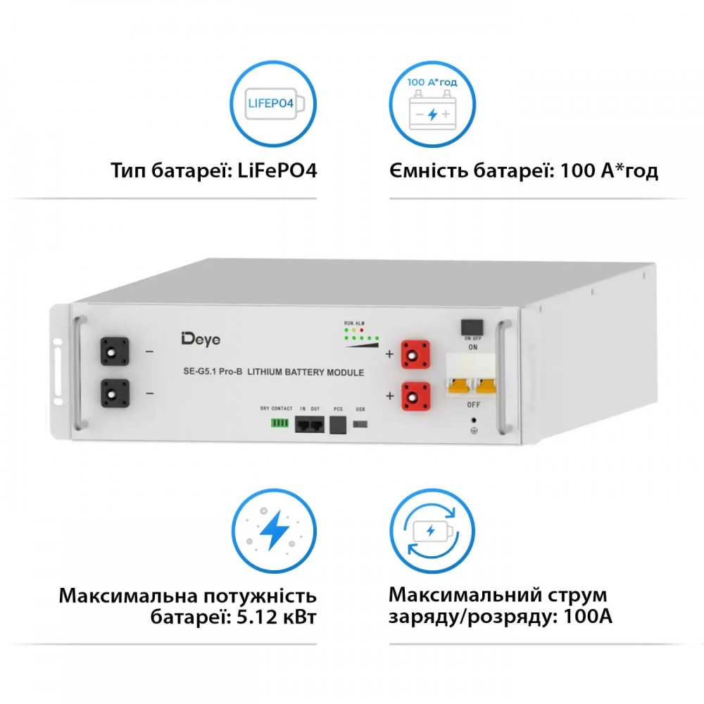 Характеристики - Аккумуляторная батарея DEYE SE-G5.1 Pro-B LiFePO4 LV 51.2v 100AH 5.12kWh